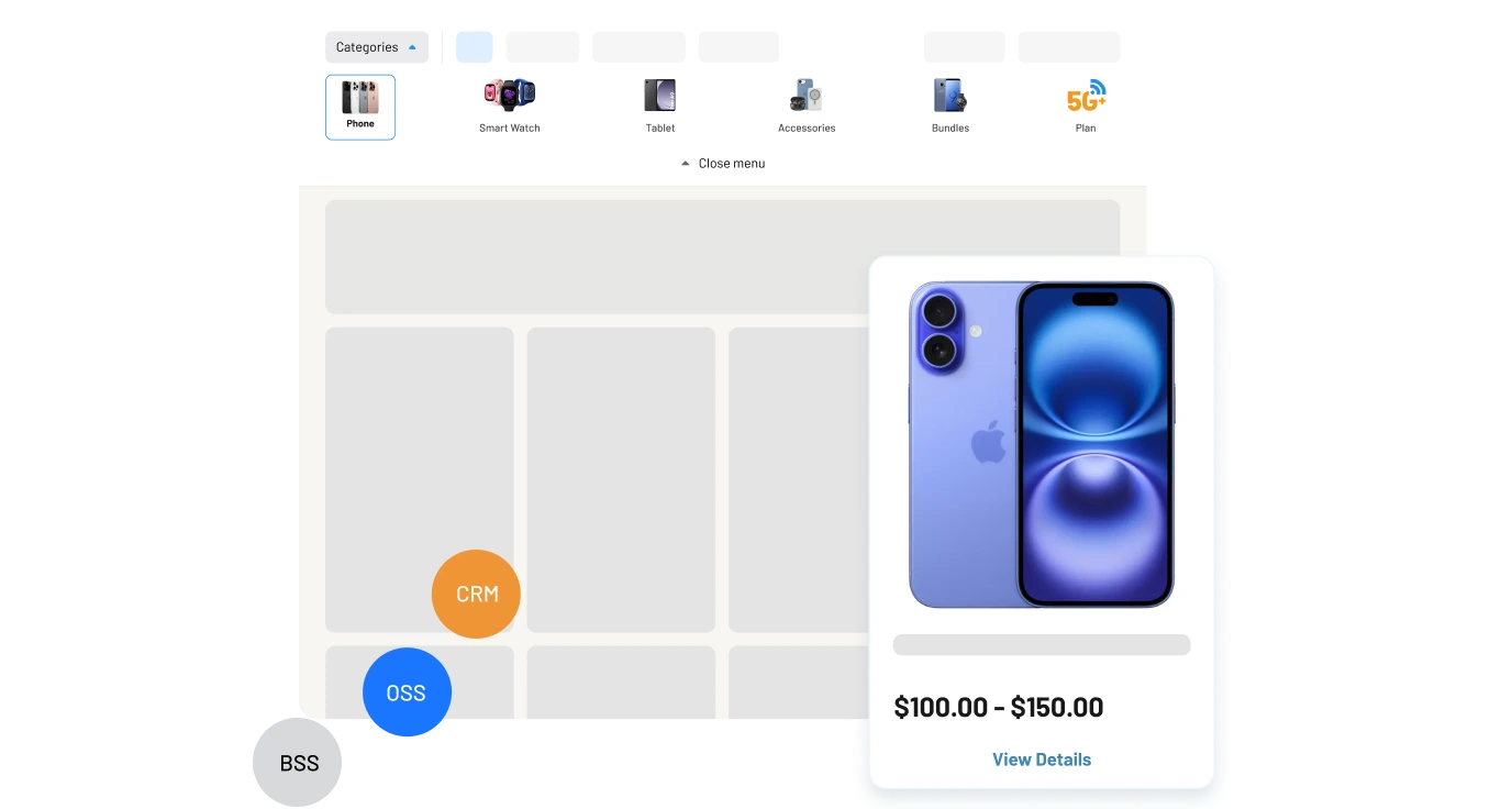 Connects directly to CRM, OSS, and BSS for real-time transactions